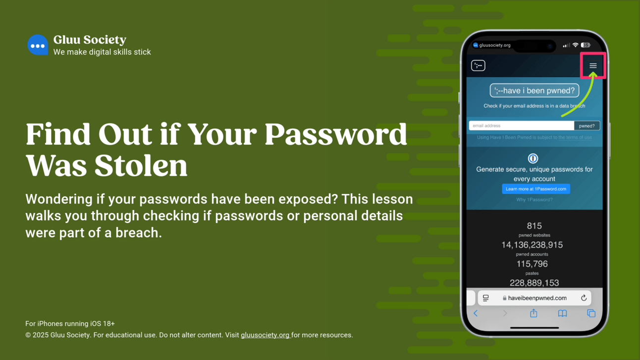 Objective of this lesson: Teach learners how to check if their passwords have been compromised in a data breach and what to do if they have.
